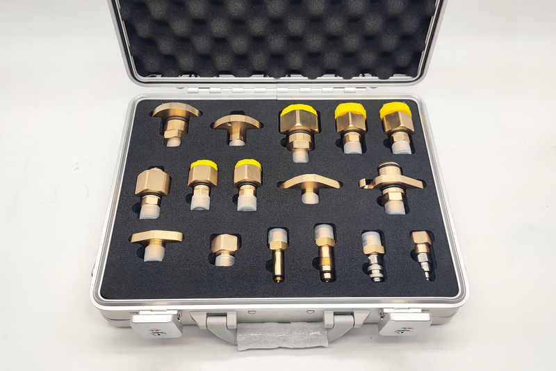 Адаптеры в портативном кейсе для всех типов применения включая все типы газовых отсеков для КРУЭ, которые используются во всем мире DN6, DN7, DN8, DN12 и DN20.