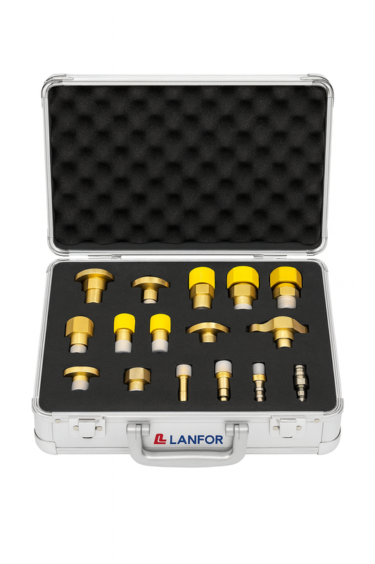 Адаптеры в портативном кейсе для всех типов применения включая все типы газовых отсеков для КРУЭ, которые используются во всем мире DN6, DN7, DN8, DN12 и DN20.